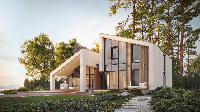 Вилла “Дэнфорд” – это пространство для здоровья и отдыха. На первом этаже расположена мастер-спальня со своей ванной и гардеробной, кабинет и кухня-гостиная. На втором этаже – 2 мастер-спальни со своими ванными и гардеробными комнатами. Выразительная двухчастная структура дома, позволяющая автономно реализовывать различные сценарии жизни для большей приватности.