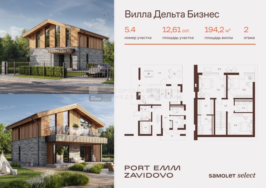 В продаже вилла площадью 194,2 м2 на участке 12,61 соток от застройщика «Самолет» в загородном проекте PORT EMM ZAVIDOVO.