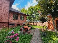 Удачное расположение дома в центре участка скрывает его от посторонних глаз и даёт ощущение приватности.