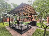 Внутренний двор с беседкой и зоной для барбекю и участок свободного назначения с дополнительным въездом и парковкой.