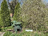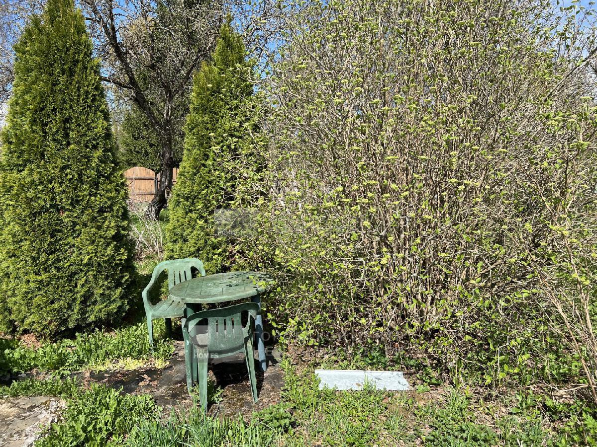 Участок утопает в зелени. Много плодовых и декоративных деревьев и кустарников (яблони, дикая слива, вишни, смородина, крыжовник, малина, туи и пр.).