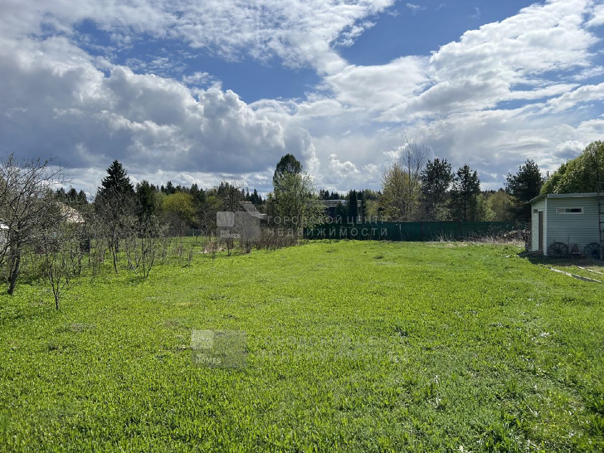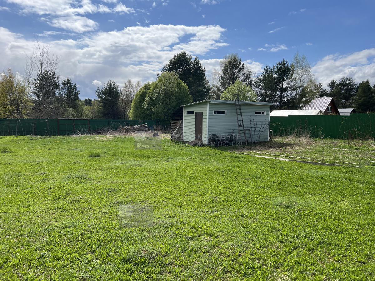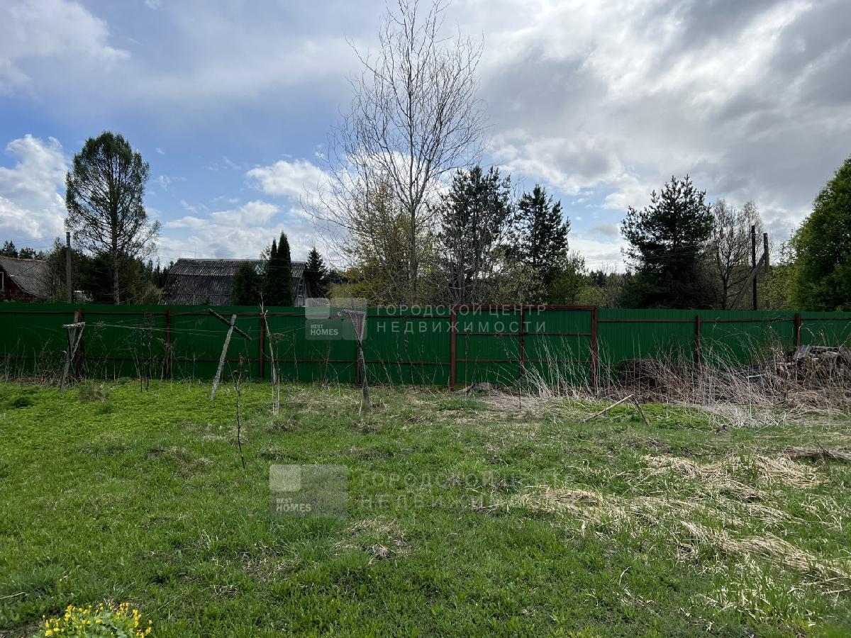 Выровненный участок 20 соток правильной прямоугольной формы. Со всех сторон огорожен забором. По фасаду деревянный штакетник, слева сетка-рабица, справа и сзади профнастил.