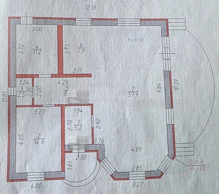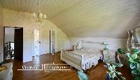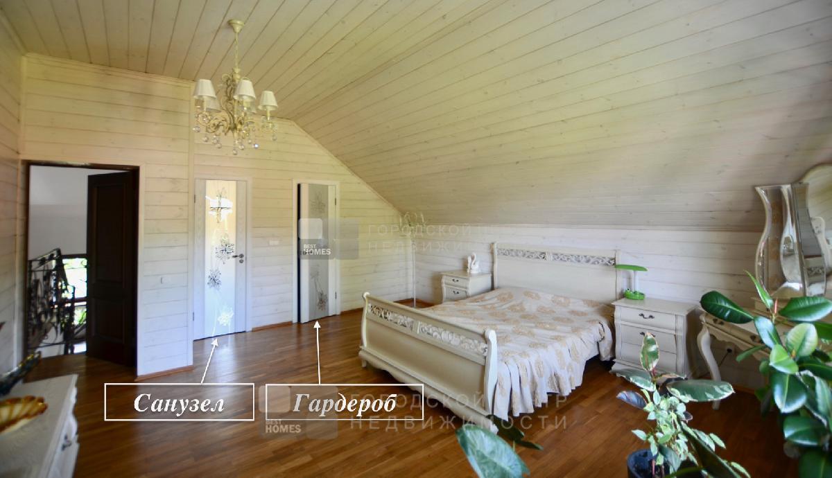 В доме на первом этаже: кухня/гостиная с выходом на участок, спальня, санузел, котельная/постирочная; на втором: мастер спальня с с/узлом и гардеробной, две спальни, санузел.