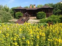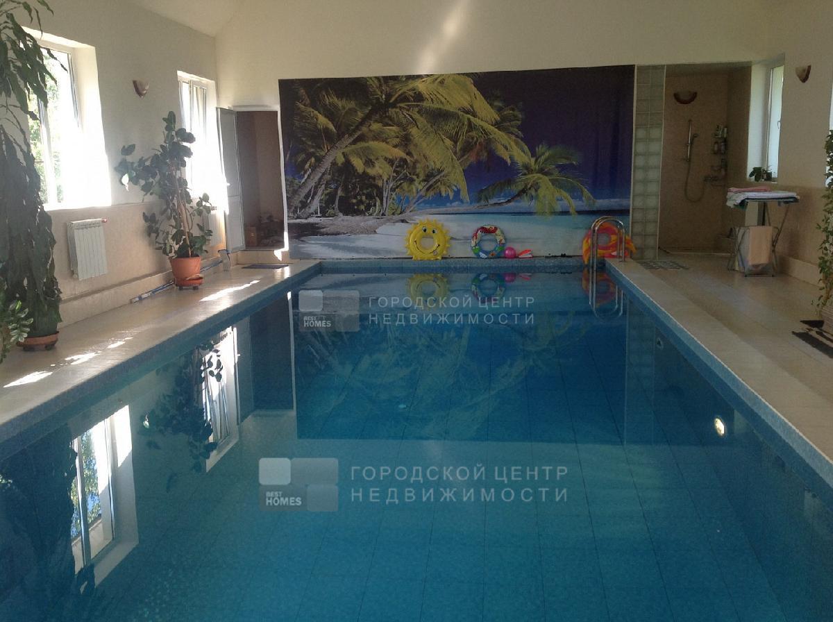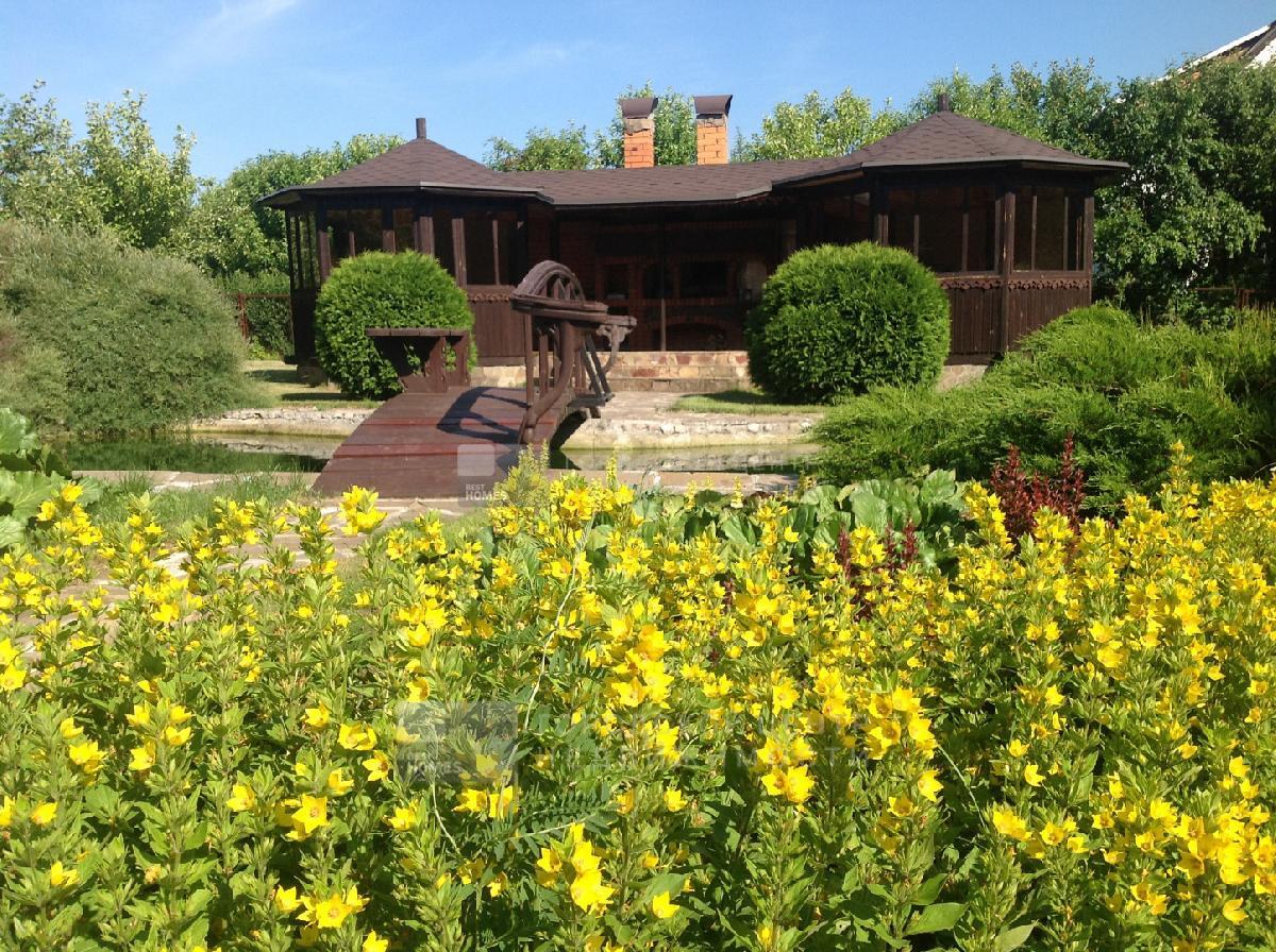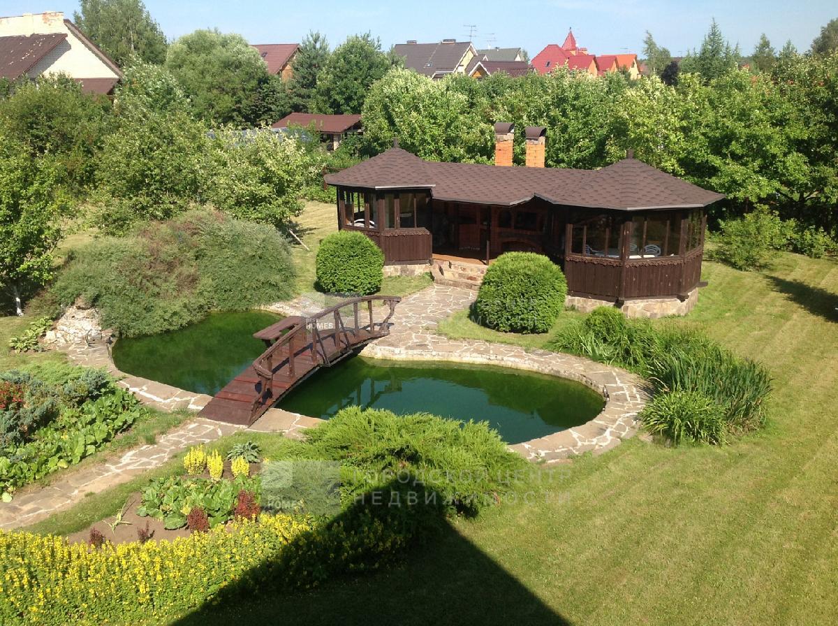 Участок с ландшафтным дизайном, фонтанами, прудом и лесными деревьями занимает площадь 42 сотки. Есть двухэтажная баня со славной историей, большой зимний бассейн на 80 кубометров, гараж на 2 машиноместа и большая беседка барбекю.