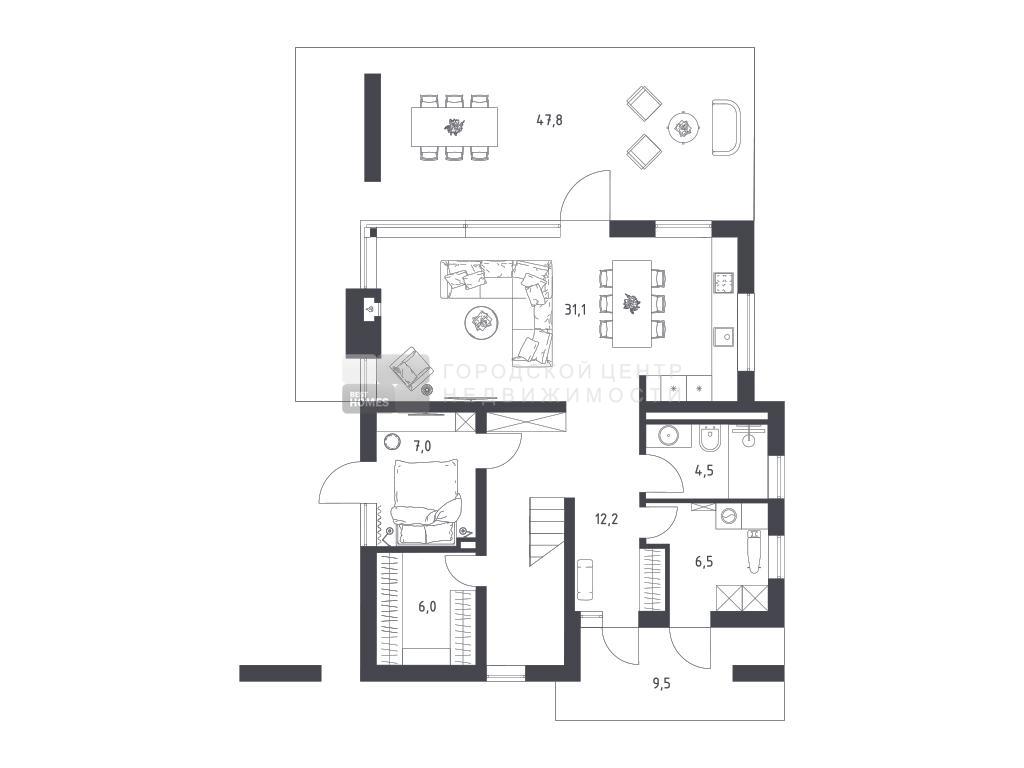 В продаже вилла площадью 233,5 м2 на участке 8,9 соток от застройщика «Самолет» в загородном проекте PORT EMM ZAVIDOVO.