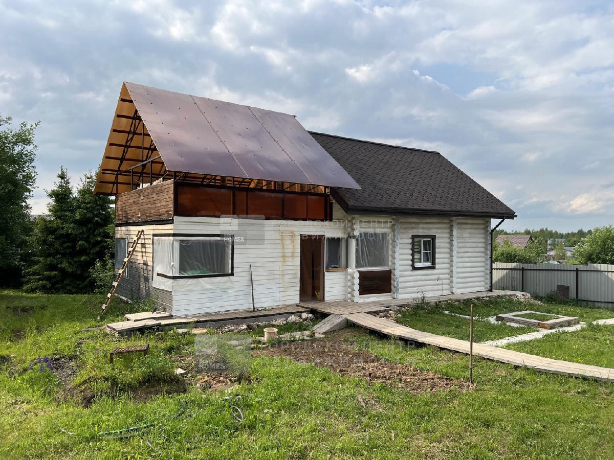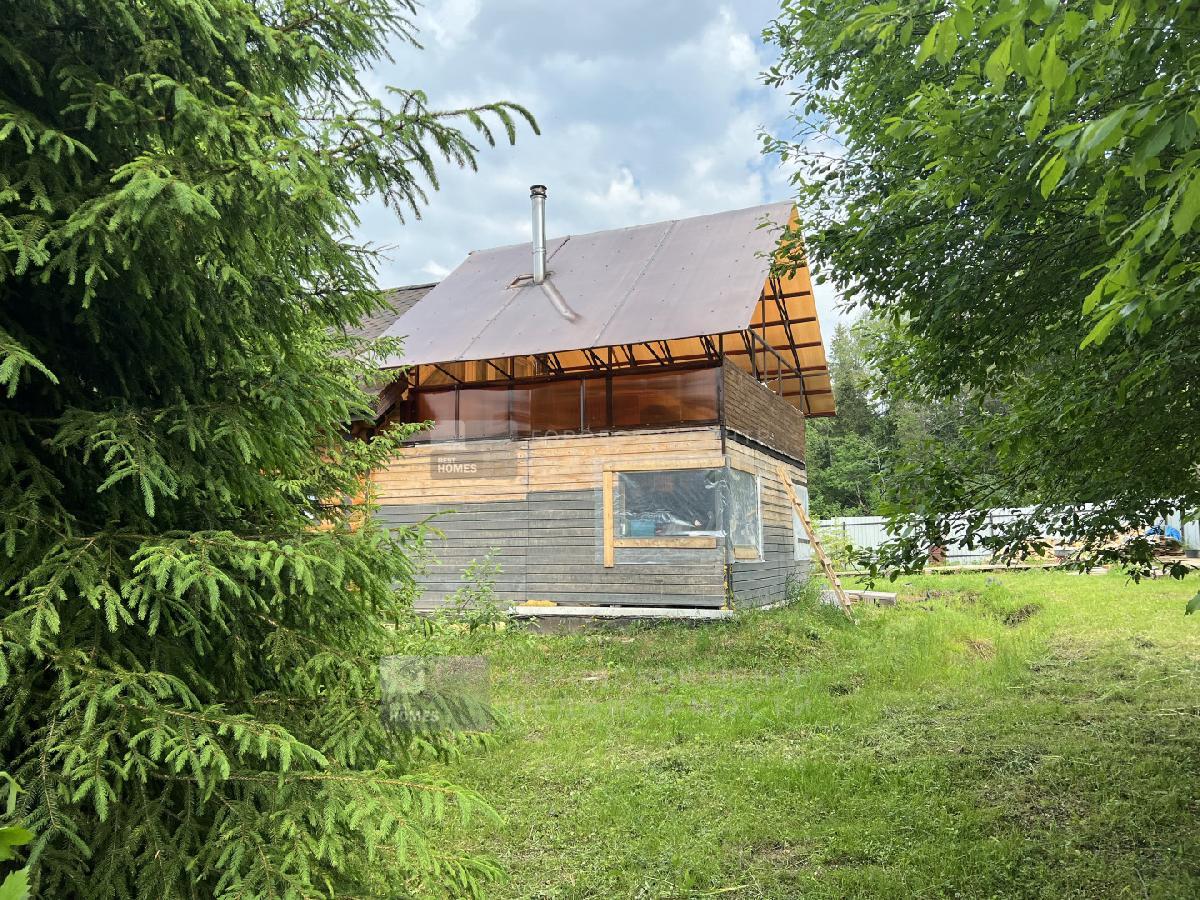 Часть дома представляет собой 2-этажную деревянную пристройку на металлических сваях.