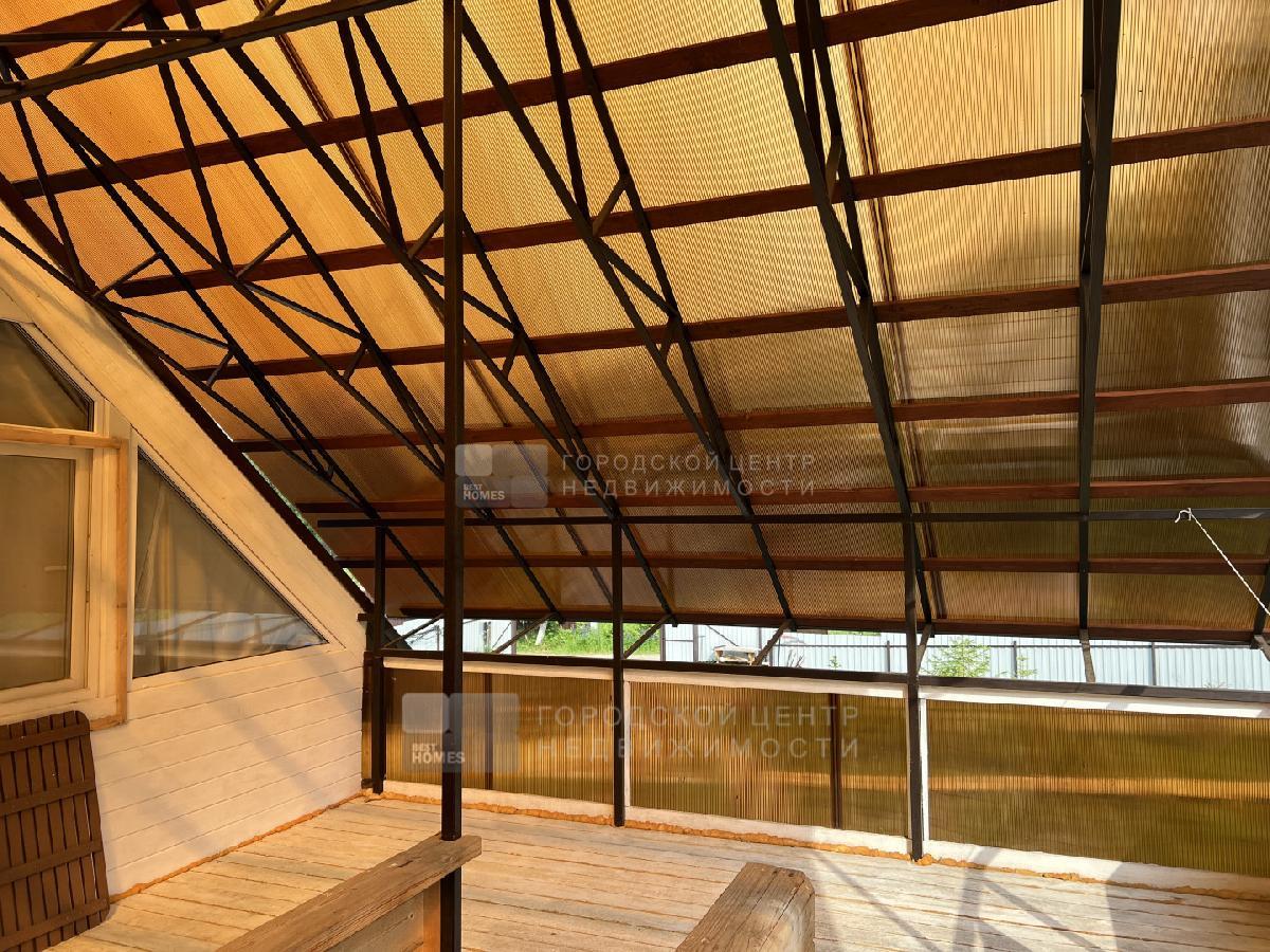 Второй этаж - крытая веранда, крыша над которой выполнена из металлического каркаса и покрыта поликарбонатом. На эту веранду сделан выход из одной из спален.