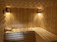В жилых помещениях на полах ламинат. плитка с подогревом в с/у, коридоре и сауне.