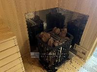 1 эт. входная группа, коридор, кухня гостиная 16 м2, ванная комната с ванной и умывальником, электрическая сауна с парогенератором. раздельный с/у (унитаз. маленький рукомойник).