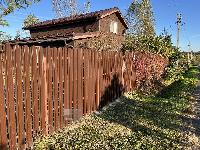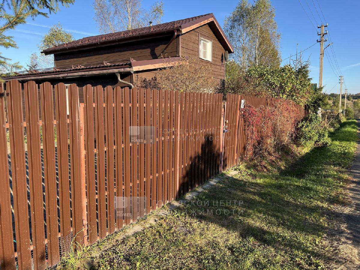 Участок со всех сторон огорожен (металлический штакетник по фасаду, профлист).