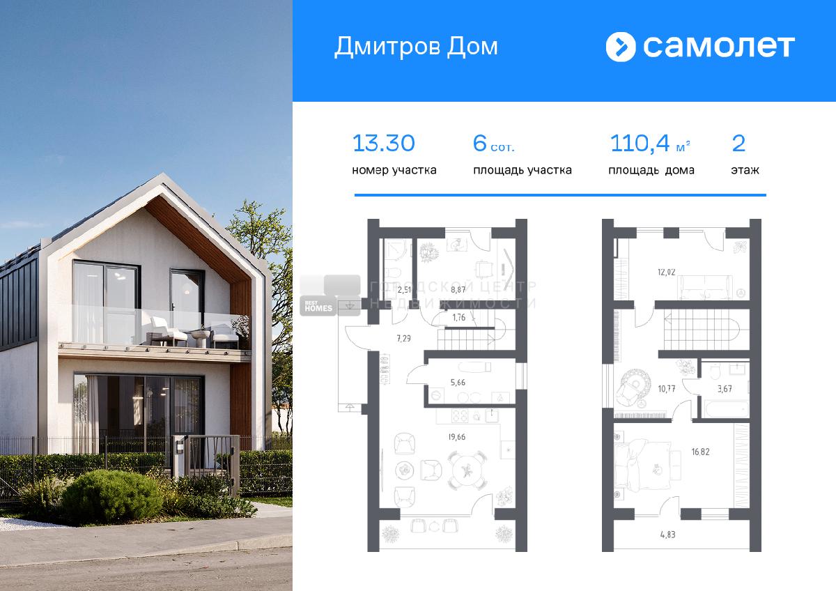 В продаже дом площадью 110,38 м2 на участке 6.0 от застройщика «Самолет» в загородном проекте «Дмитров Дом».