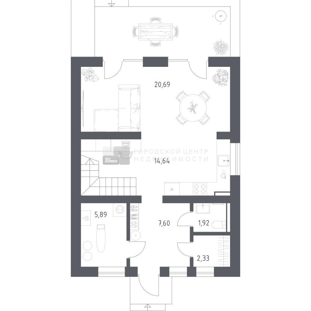 В базовую комплектацию включена металлическая входная дверь, двухкамерные стеклопакеты. Отсутствие межкомнатных перегородок позволит вам адаптировать пространство под себя.