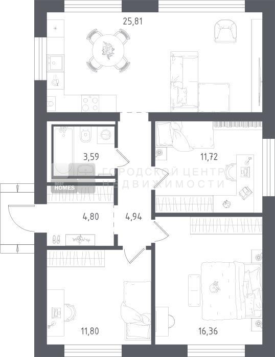 В продаже дом площадью 85,5 м2 на участке 5.1 от застройщика «Самолет» в загородном проекте «Истра Дом».