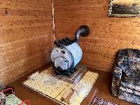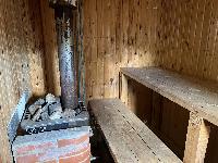 Внутри предбанник, помывочная с душем (ХВ и ГВ), парная с печью на дровах.