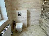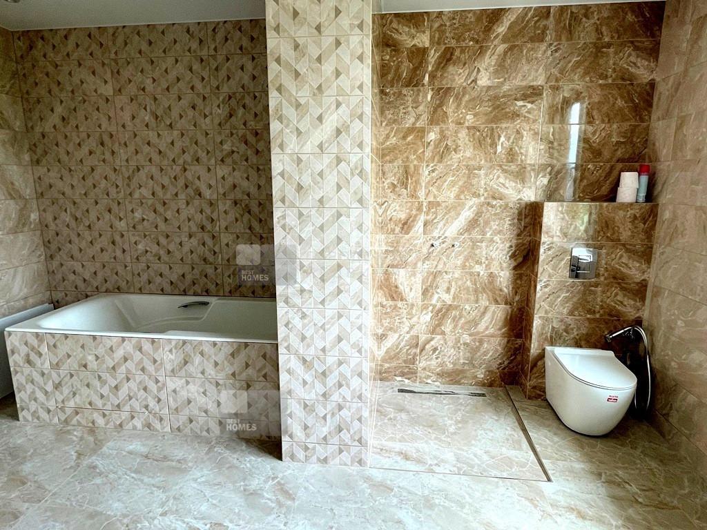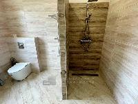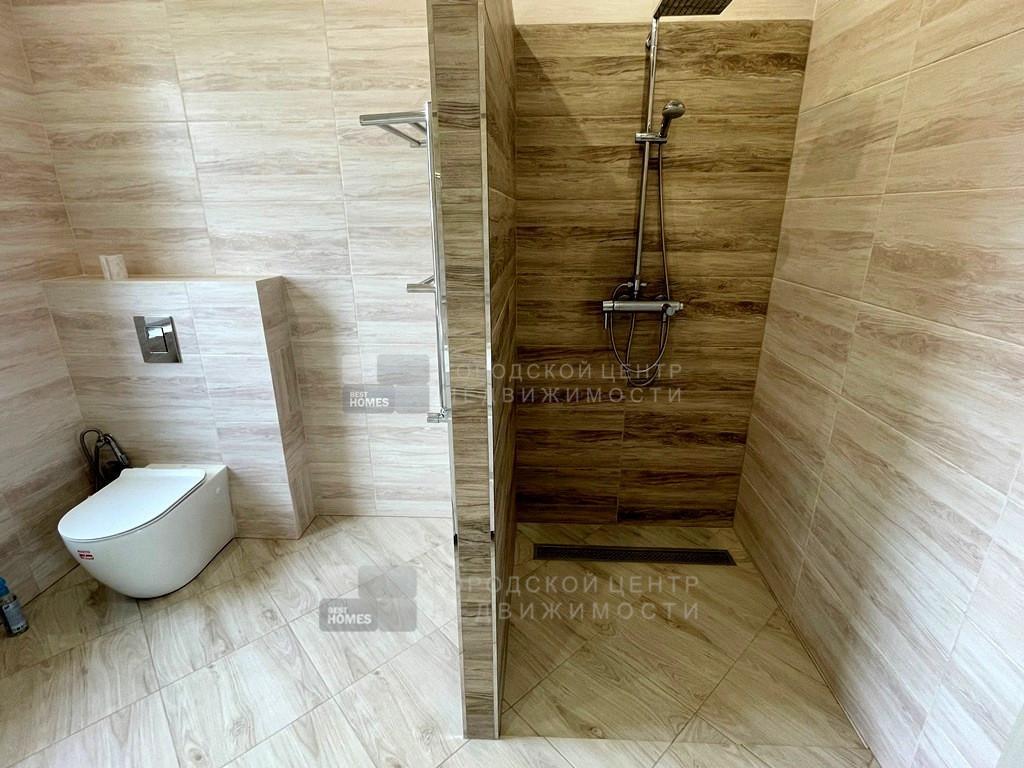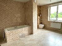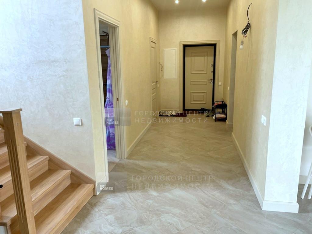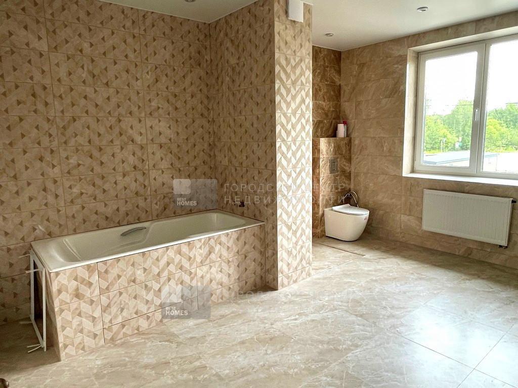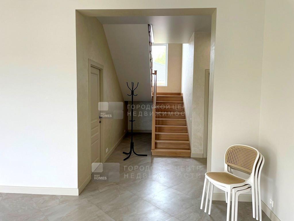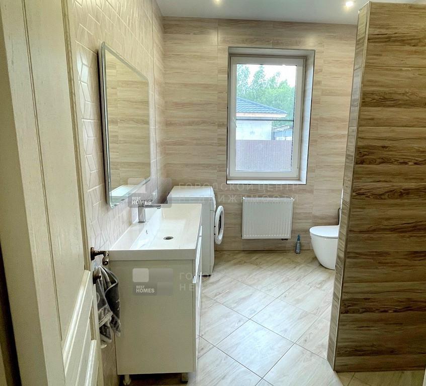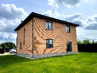Дом 202,8 кв.м, из газобетонных блоков, снаружи облицовочный кирпич, изнутри оштукатурен, Фундамент - монолитный ленточный + ж/б плита, межэтажное перекрытие и лестница тоже монолитный железобетон, кровля - металлочерепица, окна - стеклопакеты. Полностью отделан в спокойных бежево-серых тонах, оборудован системами круглогодичного жизнеобеспечения. Отделочные материалы, инженерное оборудование и сантехника - класса премиум.