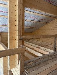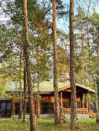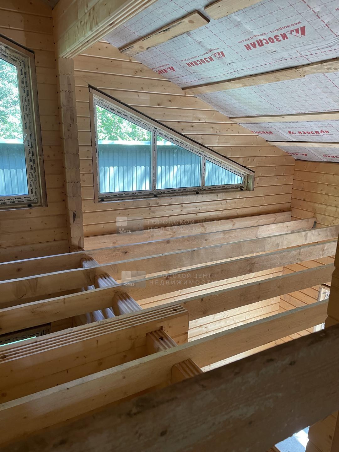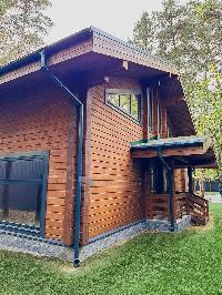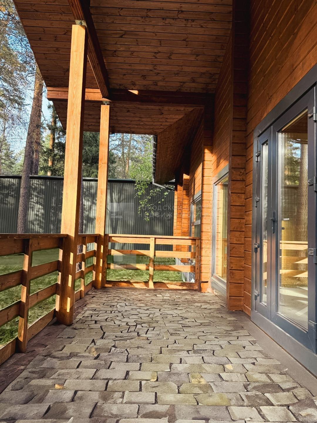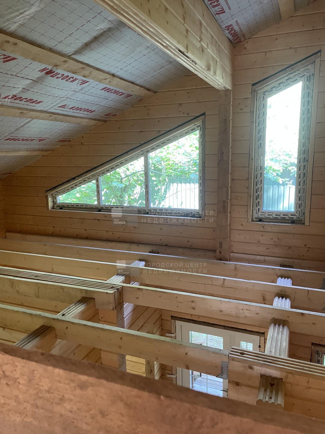 Клееный брус, бетонный монолитный фундамент ,крыша гибкая черепица, мягкая кровля, панорамные окна, ламинированные стеклопакеты, мансардные окна, широкая двойная входная дверь.