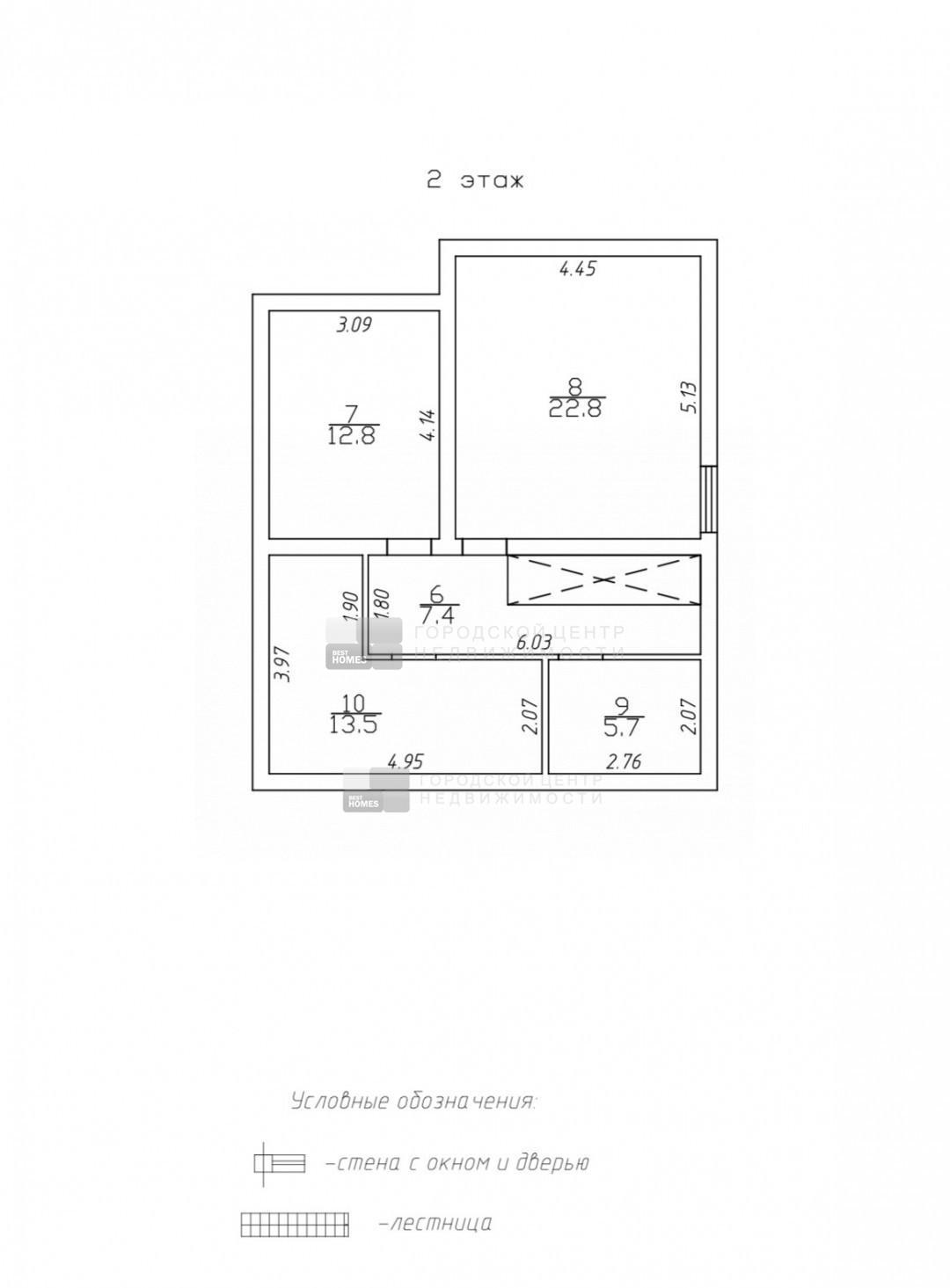 Планировка 2 этаж: лестница, холл, санузел, 3 спальни.