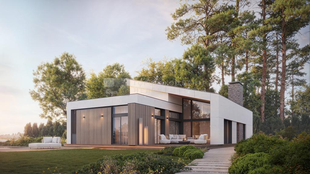 Панорамная релакс-зона в гостиной со вторым светом, камином и выходом на уютную террасу – прекрасное место для отдыха и вдохновения. Тектоничное и устойчивое формообразование, вдохновленное современной архитектурой, естественными материалами и переосмыслением стиля шале. Уютные балконы обеспечат дополнительное пространство для отдыха на природе с повышенным комфортом.