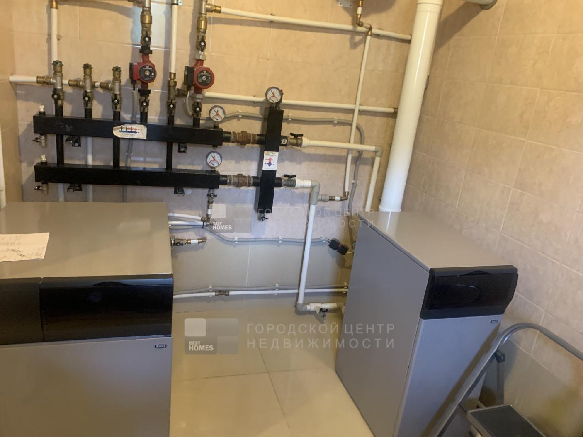 Коммуникации - 15 кВт, центральный водопровод, система водоподготовки. Септик закрытого типа. МАГИСТРАЛЬНЫЙ ГАЗ. Отопление дома обеспечивается газовым котлом фирмы Baxi .