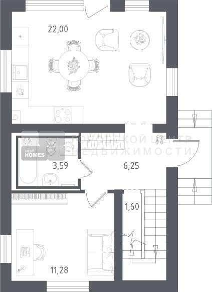 В базовую комплектацию включена металлическая входная дверь, двухкамерные стеклопакеты. Отсутствие межкомнатных перегородок позволит вам адаптировать пространство под себя.