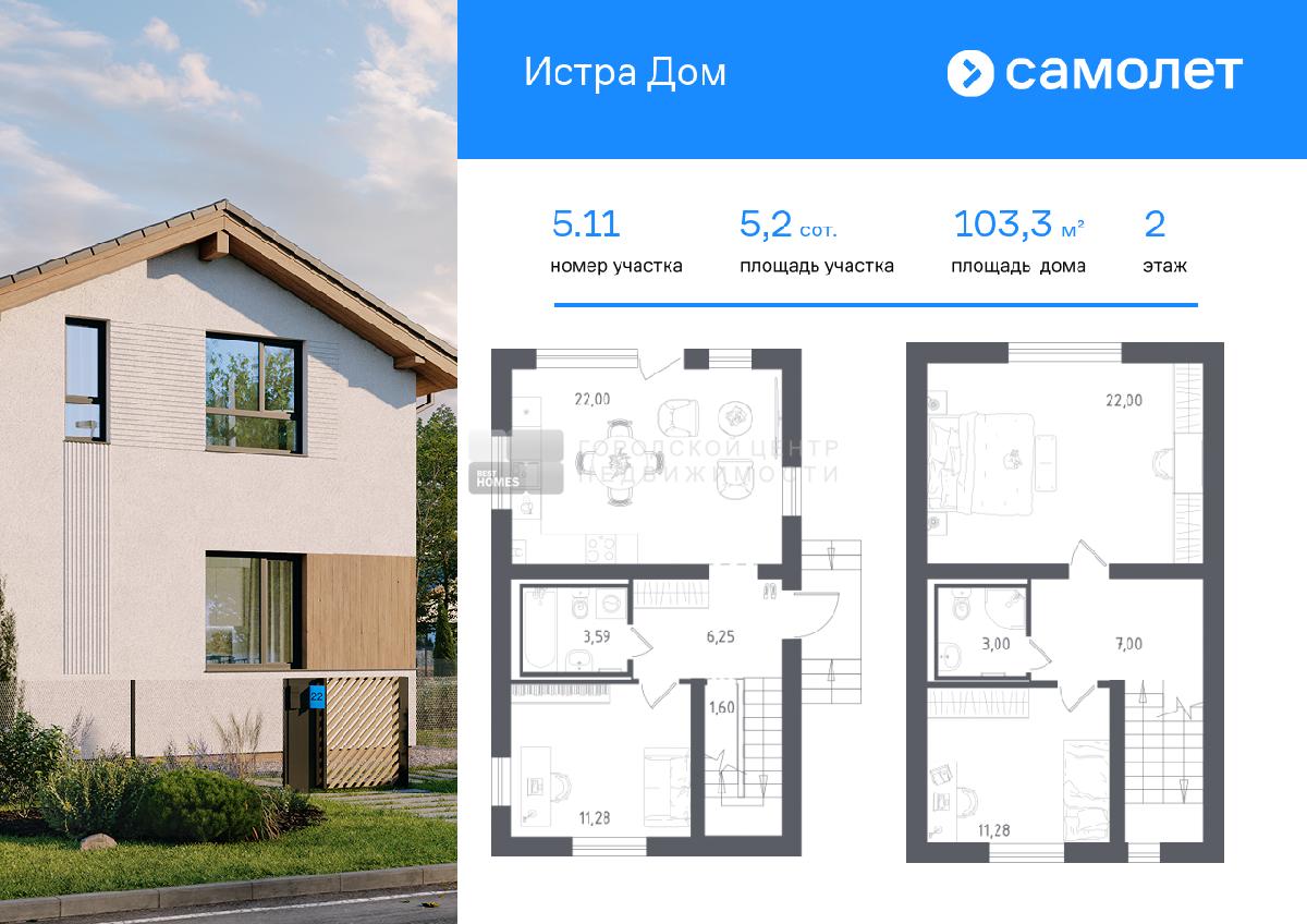 В продаже дом площадью 103,3 м2 на участке 5.22 от застройщика «Самолет» в загородном проекте «Истра Дом».