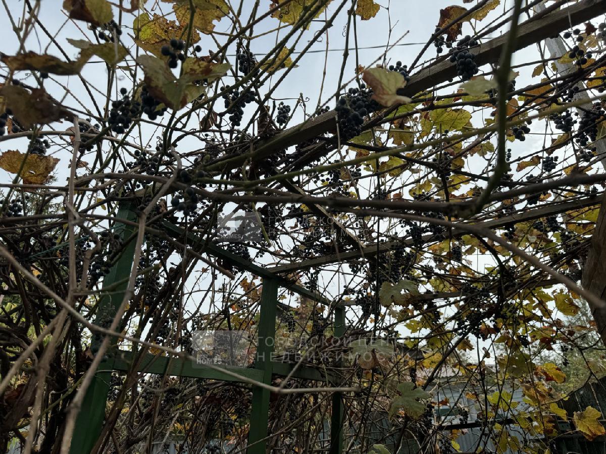 На участке расположены плодовые деревья, виноград.