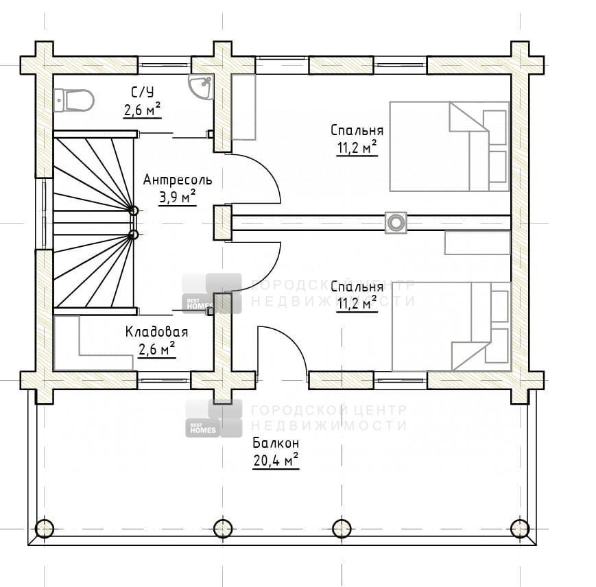 2 этаж - 2 изолированные спальни по 11,2 кв м, с/у, кладовка
