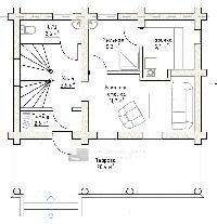 1 этаж - тамбур, холл, с/у, душевая, парилка, кухня-гостиная (11,7 кв м)