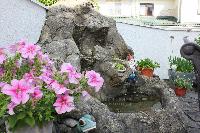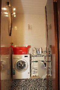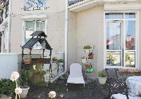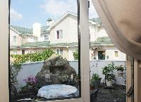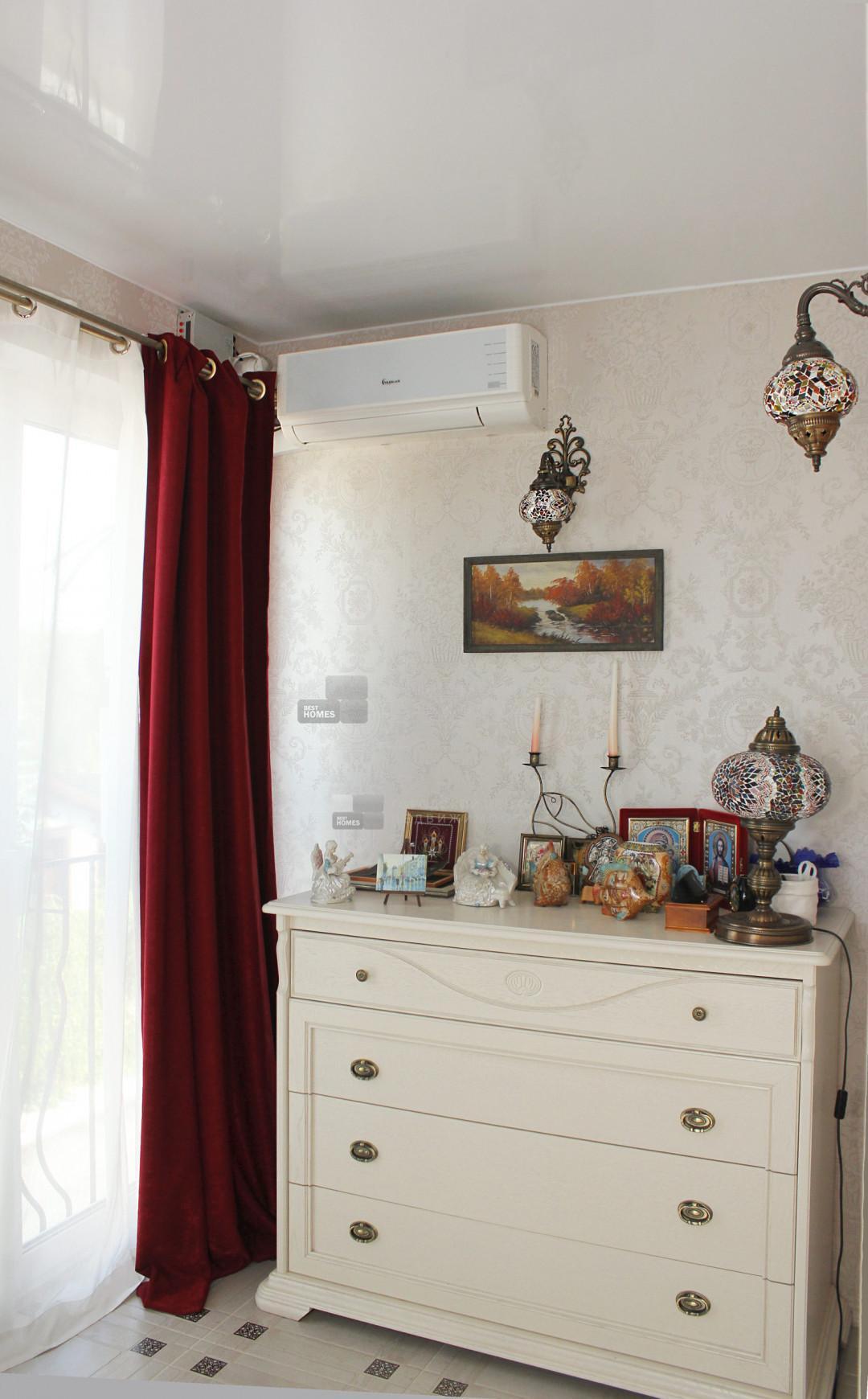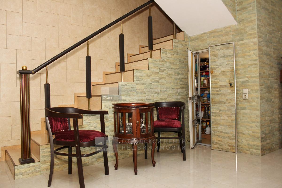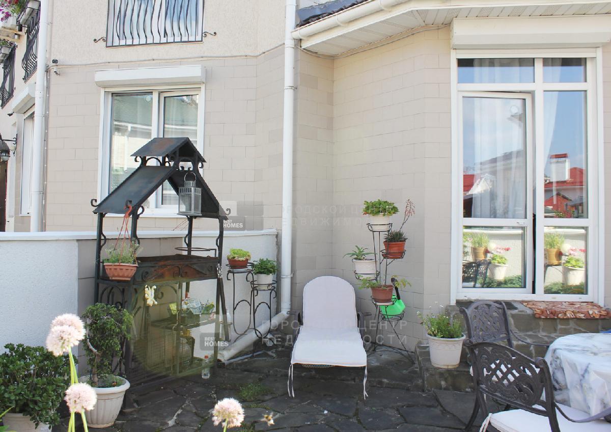 На первом этаже расположены прихожая, просторная гостиная со столовой зоной и кухней, оборудованной всей необходимой бытовой техникой, кладовая и гостевой санузел, выполненный в черно-белых тонах. Из гостиной можно выйти в уютный итальянский дворик с фонтаном и зоной для отдыха. Все окна первого этажа оборудованы рольставнями для безопасности, а сам таунхаус находится под круглосуточным наблюдением.