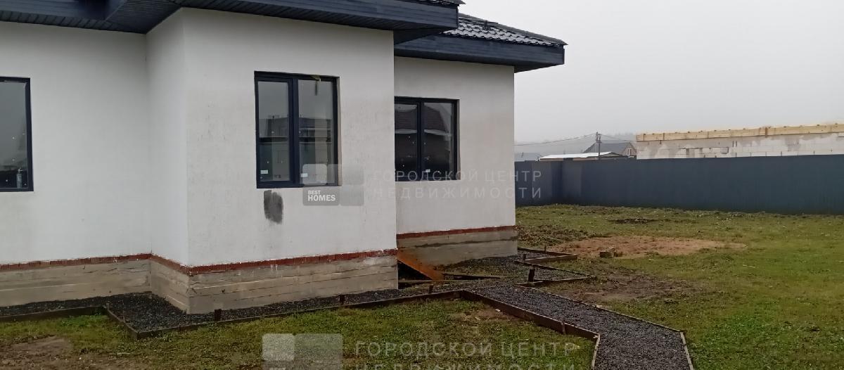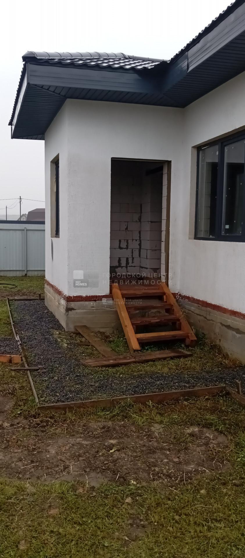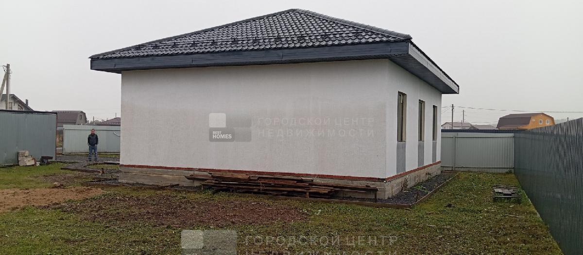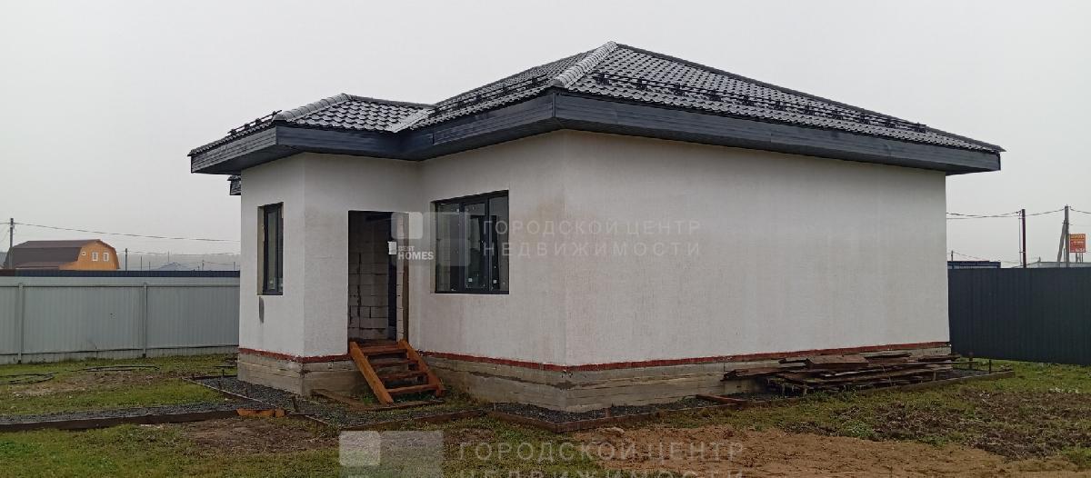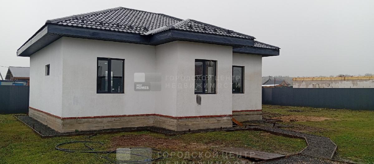 Продается качественный одноэтажный дом из газобетонных блоков (под достройку) площадью 88,9 кв.м. на ровном прямоугольном участке 7,09 сот. по адресу Московская область, городской округ Домодедово, деревня Матчино, коттеджный поселок Земляничная поляна - 3, Пограничная ул., уч. 376.