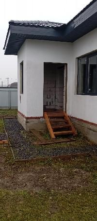 Дом построен в 2025 году из газобетонных блоков D-400 . Фундамент ленточный с железобетонной плитой 250 мм.. Наружные стены - газобетонный блок плюс утепление 10 см.,плюс декоративная штукатурка Кровля - металлочерепица со снегозадержателями и софитами 30 см. Окна - 2-х камерные стеклопакеты, входная дверь металлическая, высота потолка - 3,3 м.. Водоснабжение - колодец - 9 колец, выполнена подводка в дом. Участок с трех сторон огорожен забором из профнастила; со стороны дороги - металлическим штакетником с откатными воротами и калиткой.