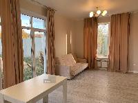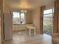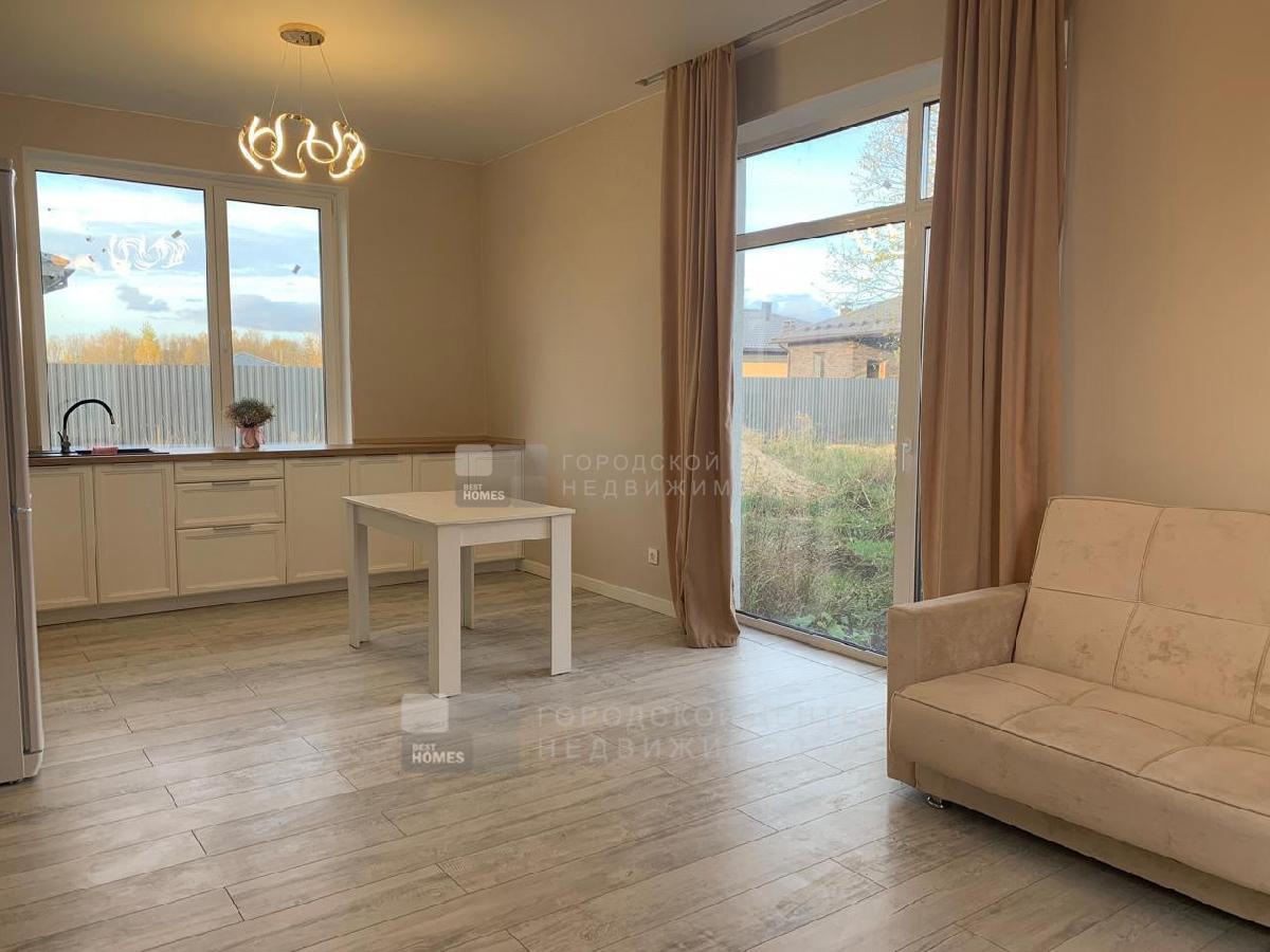 Просторная гостиная объединённая с кухней и выходом для отдыха на свежем воздухе.