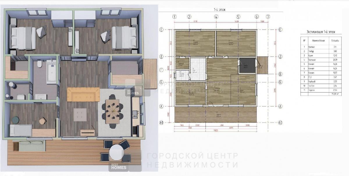 Просторная кухня-гостиная, 3 комнаты, 2 санузла, большая терраса. Участок благоустроен, есть забор.