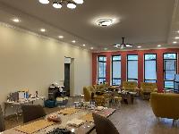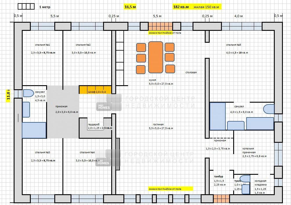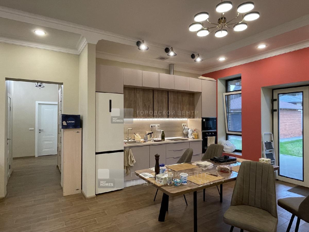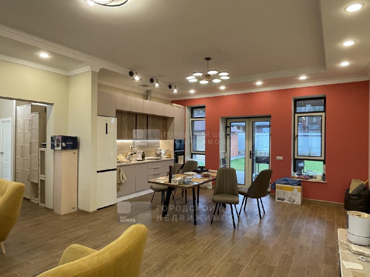 В доме хорошо спланированы помещения: Светлая гостиная- кухня с большими окнами размером 55 м. кв. Выход из гостиной на открытое патио с мангальной зоной для комфортного отдыха.