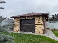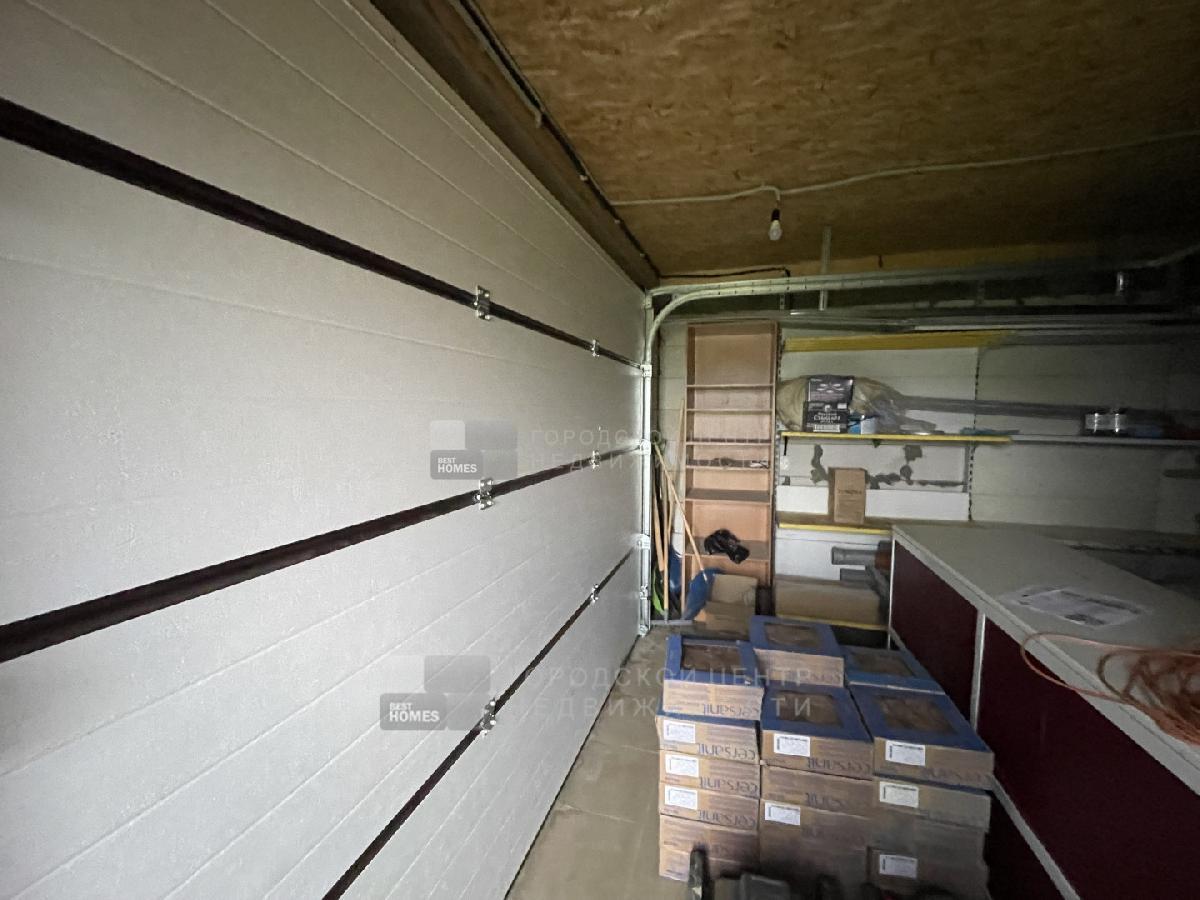 На участке стоит гараж 42 м кв с роллетными воротами. Гараж оборудован полками.