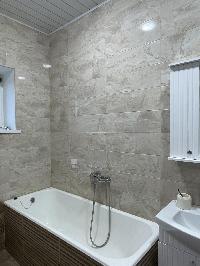 На всей площади дома установлен теплый пол и покрыт керамогранитной плиткой.