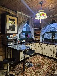 Четыре уютные спальни с балконами и высокими потолками, просторная кухня- гостиная, русская печка с лежанкой и банька с беседкой, терасса и навес для авто.