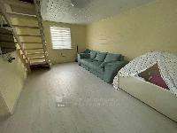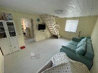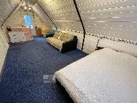 На первом этаже: прихожая, кухня, спальня (детская), санузел, гостиная. На втором этаже 1 большая комната с диваном и двуспальной кроватью + балкон с видом на лес.