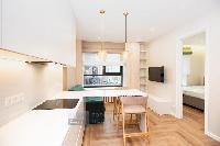 Для Вашего удобства в наличии вся необходимая техника: кондиционер, холодильник, телевизор, стиральная и посудомоечная машины, водонагреватель, бытовые приборы. Квартира состоит из кухни-гостиной с раскладным диваном, спальни (кровать с подъемным механизмом, спальное место 160*200, гардероб), большого санузла с душевой кабиной и просторной прихожей.