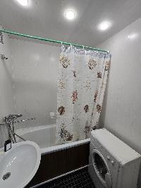 Кухня мебелирована, включает в себя большой холодильник, микроволновую печь и электроплиту с духовкой. Санузел раздельный, ванная комната и отдельно туалет.