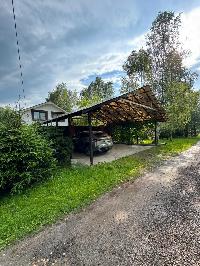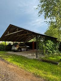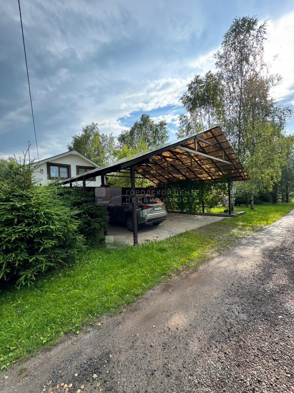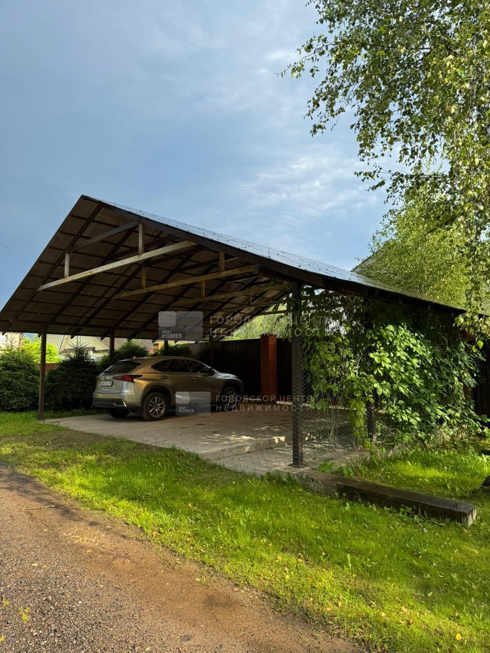 С улицы перед воротами построен открытый навес для парковки двух авто. Пол жб плита.