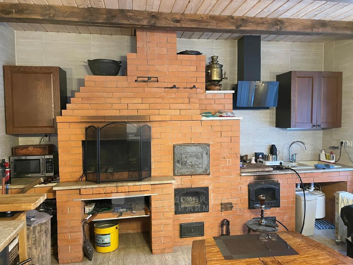 В. Летняя кухня-барбекью 40 м2 из кирпича. Фундамент ленточный ж/б, окна двойной стеклопакет. Крыша мягкая кровля катепал. Вокруг сделана отмостка и водостоки. Внутри большая комната для дружных застолий. Построены печь-голландка из красного кирпича, плита на дровах, мангальная зона, казан.