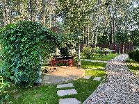 Высажен плодоносящий сад (яблони, сливы, вишня, груша, малина, смородина, крыжовник).