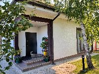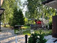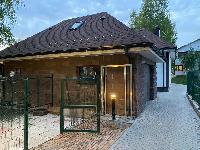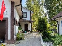 Б. Гостевой 2-эт. дом-баня 107 м2. Построен в 2016г из кирпича. Фундамент ж/б ленточный. Крыша мягкая кровля катепал. Окна двойной стеклопакет. Снаружи утеплен (100мм пеноплекс) и декоративная отделка "короед".