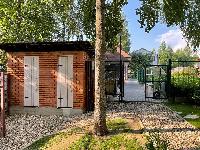 На въезде оборудованы автоматические откатные ворота, открывающиеся с пульта. Калитка. За воротами перед гаражом просторная выложенная брусчаткой площадка.