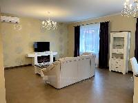 Дом 250 м2, из газобетонных блоков, фундамент и перекрытия - монолитный железобетон, мягкая кровля, стеклопакеты. Оборудован системами круглогодичного жизнеобеспечения, полностью отделан и меблирован. Интерьеры выдержаны в светлых, жемчужных тонах, мебель, инженерное оборудование, бытовая электроника и сантехника - класса премиум.
