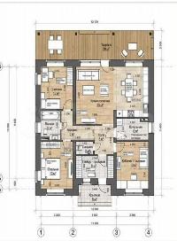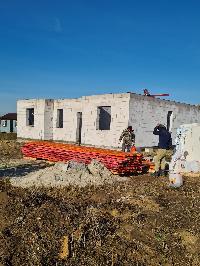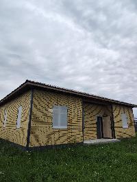 Дом площадью 120 кв.м состоит из 4-х жилых комнат и веранды. Готов под чистовую отделку (готовность 95%) . Стены выполнены из 300-го пеноблока, снаружи утепленного 50-й минватой и обшитого декоративным пластиком "под кирпич", внутри полностью оштукатурены. Потолок утеплен 20-ой минватой. Установлены пластиковые окна и дверь для выхода на веранду Rexau.