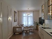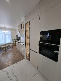 Дизайнерский ремонт выполнен совсем недавно. Мебель и встроенная техника остаются новому собственнику.