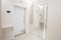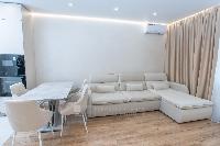 В квартире выполнен дизайнерский ремонт из современных материалов с новой современной мебелью и бытовой всей техникой (холодильник посудомоечная машина, индукционная плита, духовой шкаф, микроволновка, стиральная машина, кондиционер, телевизор, видеодомофон). В прихожей, на кухне, и сан.узле теплые полы.